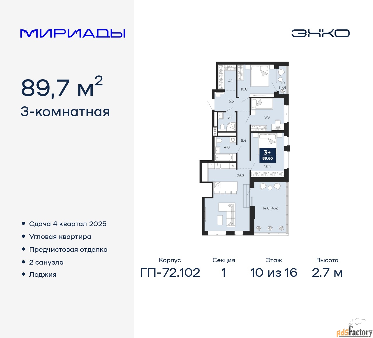 Дом монолитный, многоподъездный, переменной этажности, от 14 до 16 этажей. Квартира находится в 1-й секции высотой 16 этажей в корпусе ГП-72.102. На этаже 9 квартир. В подъезде 1 пассажирский и 1 грузовой лифт. Окончание строительства - 4 квартал 2025 года. Оформление сделки по договору долевого участия.
