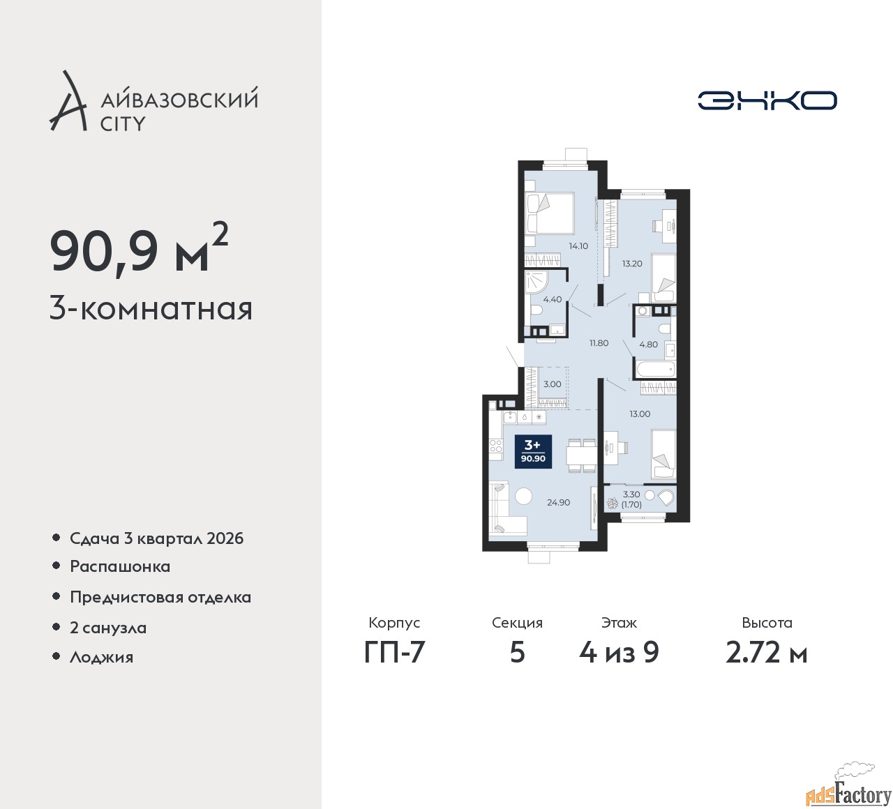 Дом монолитный, многоподъездный, переменной этажности, от 9 до 24 этажей. Квартира находится в 5-й секции высотой 9 этажей в корпусе ГП-7. На этаже 7 квартир. В подъезде 1 пассажирский и 2 грузовых лифта. Окончание строительства - 3 квартал 2026 года. Оформление сделки по договору долевого участия.