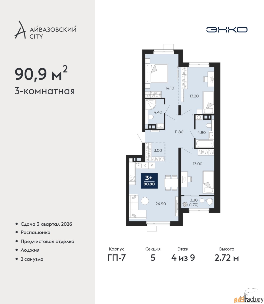 | Общая площадь (кв.м) | 90.9 |
