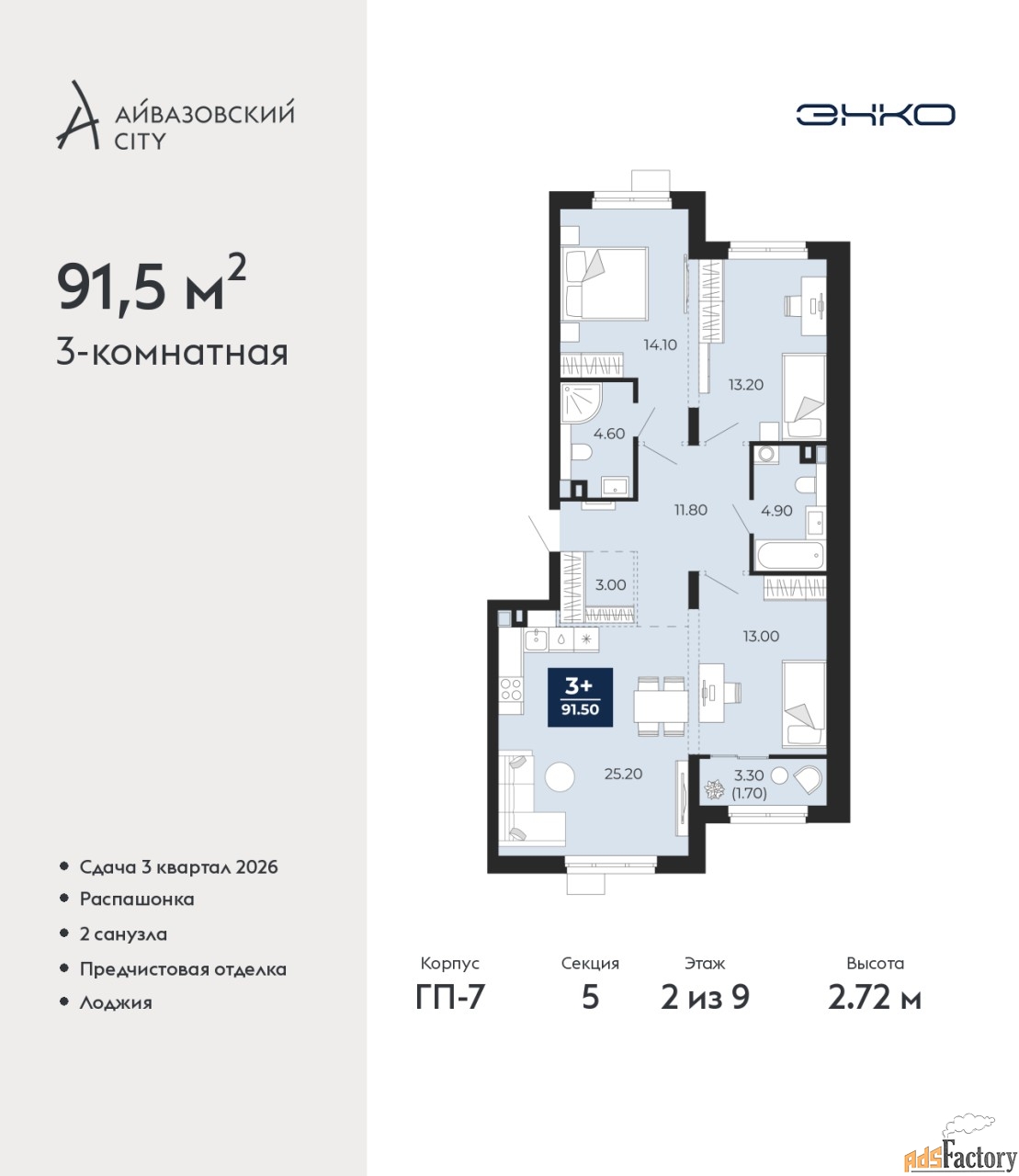 | Общая площадь (кв.м) | 91.5 |