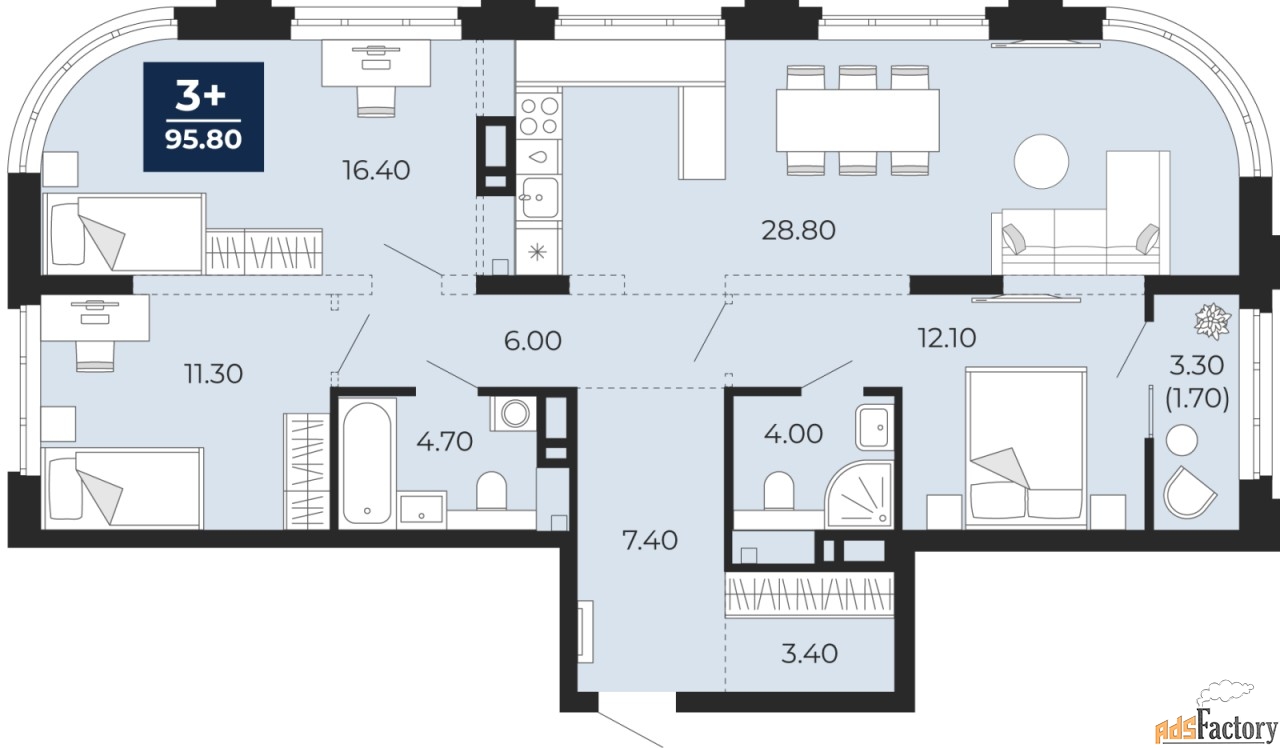 | Общая площадь (кв.м) | 95.8 |