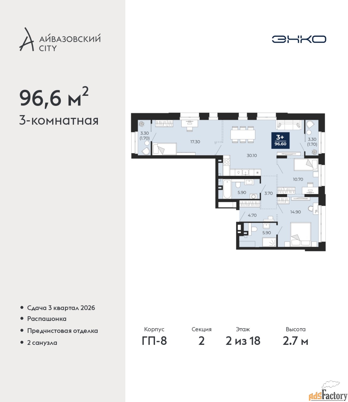 Дом монолитный, многоподъездный, переменной этажности, от 14 до 24 этажей. Квартира находится во 2-й секции высотой 18 этажей в корпусе ГП-8. На этаже 5 квартир. В подъезде 1 пассажирский и 1 грузовой лифт. Окончание строительства - 3 квартал 2026 года. Оформление сделки по договору долевого участия.