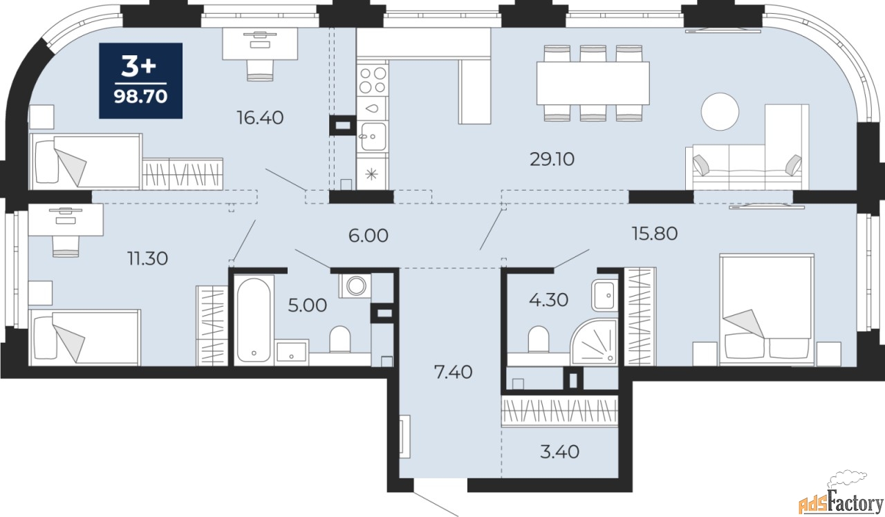 | Общая площадь (кв.м) | 98.7 |