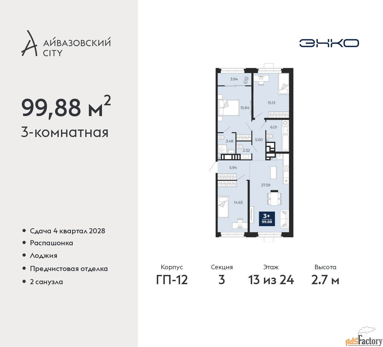 Дом монолитный, многоподъездный, высотой 24 этажа. Квартира находится в 3-й секции в корпусе ГП-12. На этаже 6 квартир. В подъезде 1 пассажирский и 1 грузовой лифт. Окончание строительства - 4 квартал 2028 года. Оформление сделки по договору долевого участия.