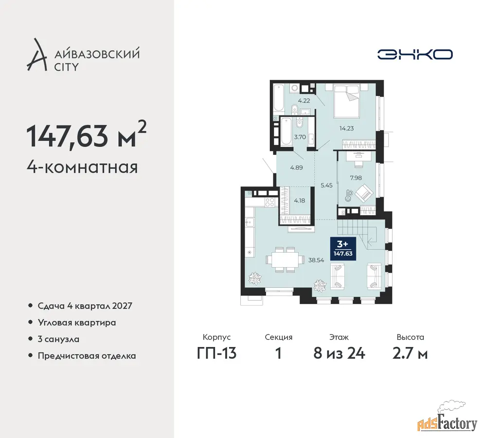 | Общая площадь (кв.м) | 147.63 |