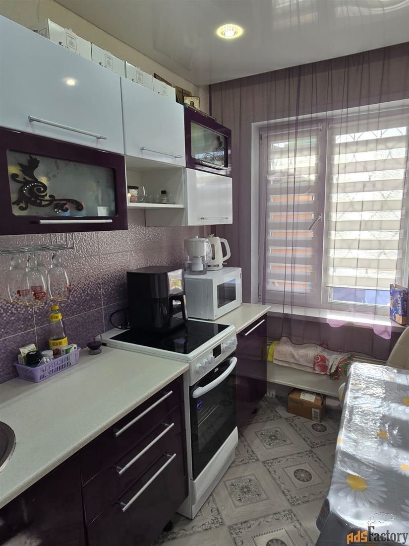 Солнечная сторона. Квартира теплая, все батареи отключены на всю зиму. В коридоре встроенный шкаф для верхней одежды. Так же могу оставить кухонный гарнитур новым хозяевам.