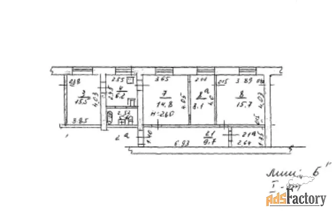 Жилая площадь 61.92 кв. м, кухня 7.74 кв. м, ремонта нет.