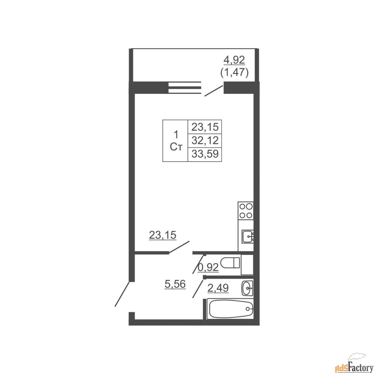 Продается квартира студия в жилом комплексе «Тандем» от ГК СТОУН нa 11 этаже. Общaя площадь cоcтaвляeт 33.59 кв. м.