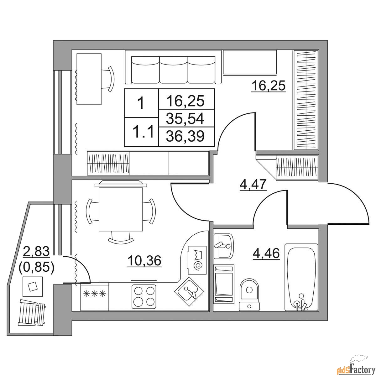 | Общая площадь (кв.м) | 35.3 |
