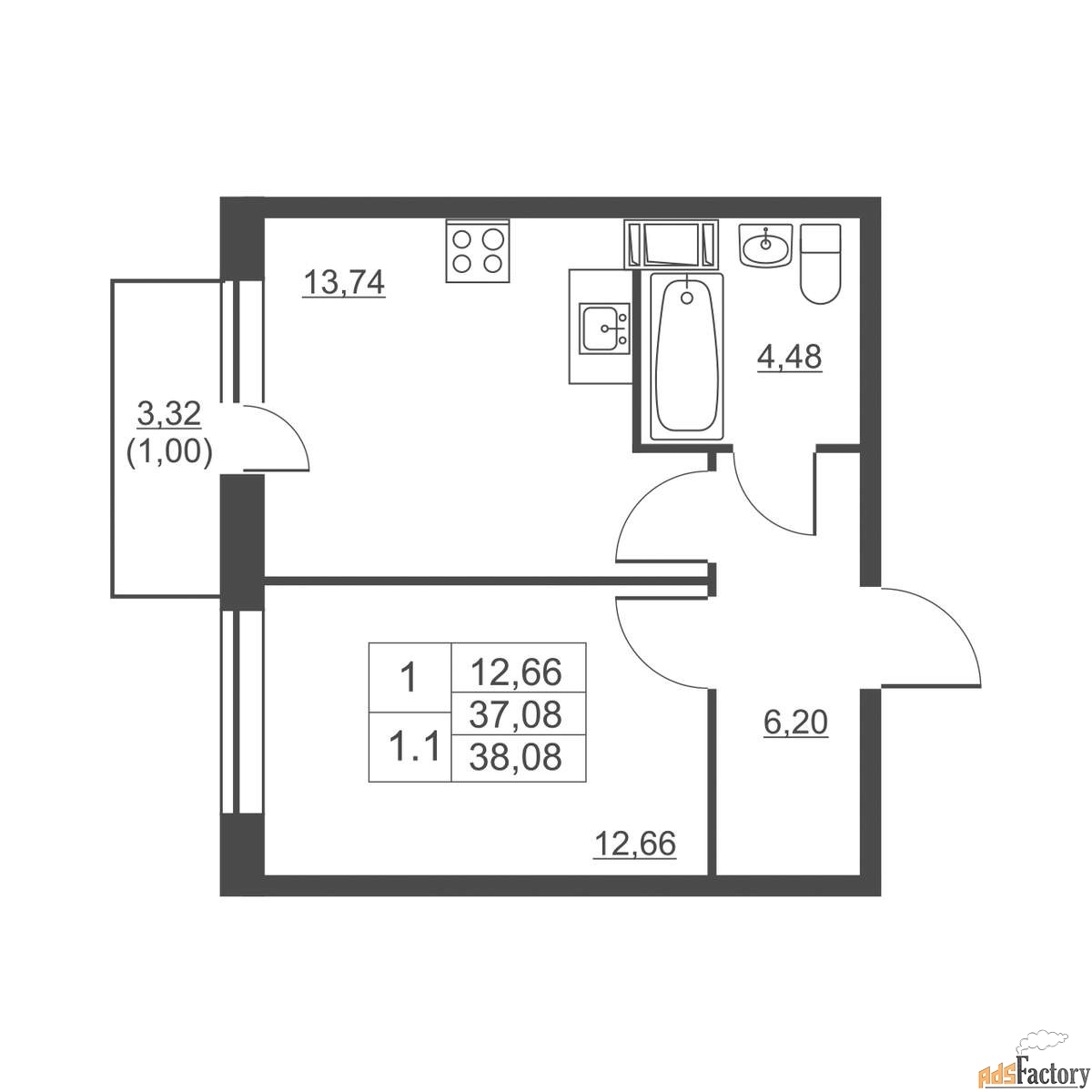 | Площадь кухни (кв.м) | 13.74 |