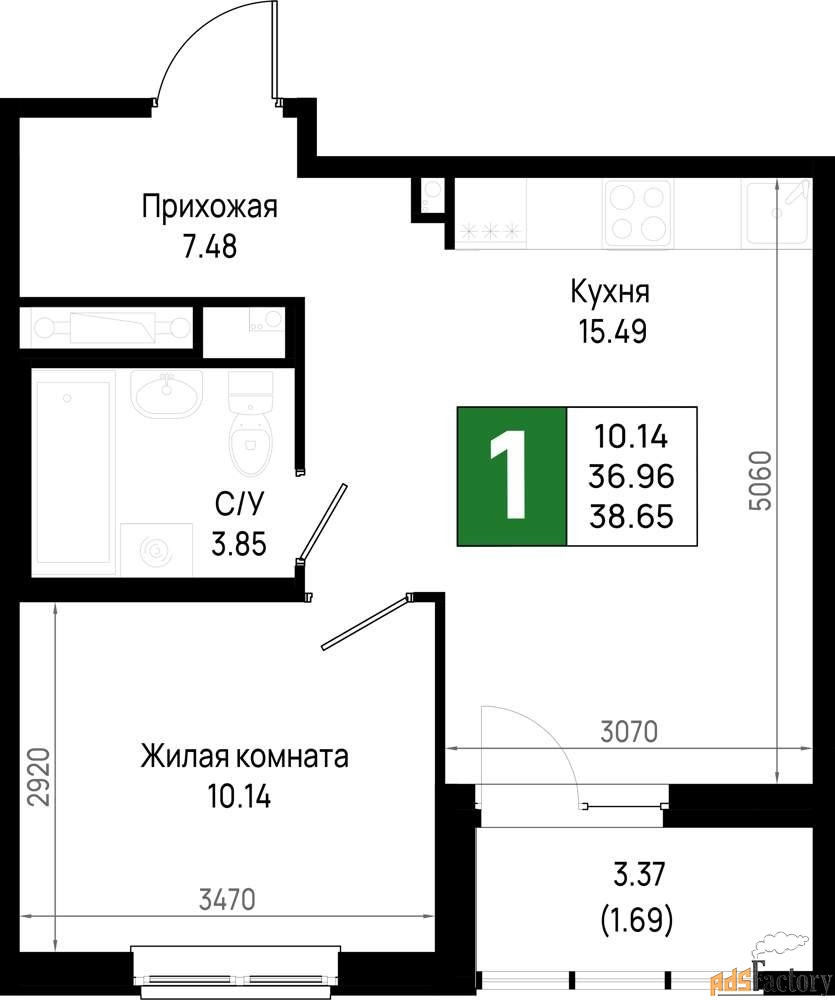 Жилая площадь 10.14 м2, кухня 15.49 м2, черновая отделка, комнаты изолированные.