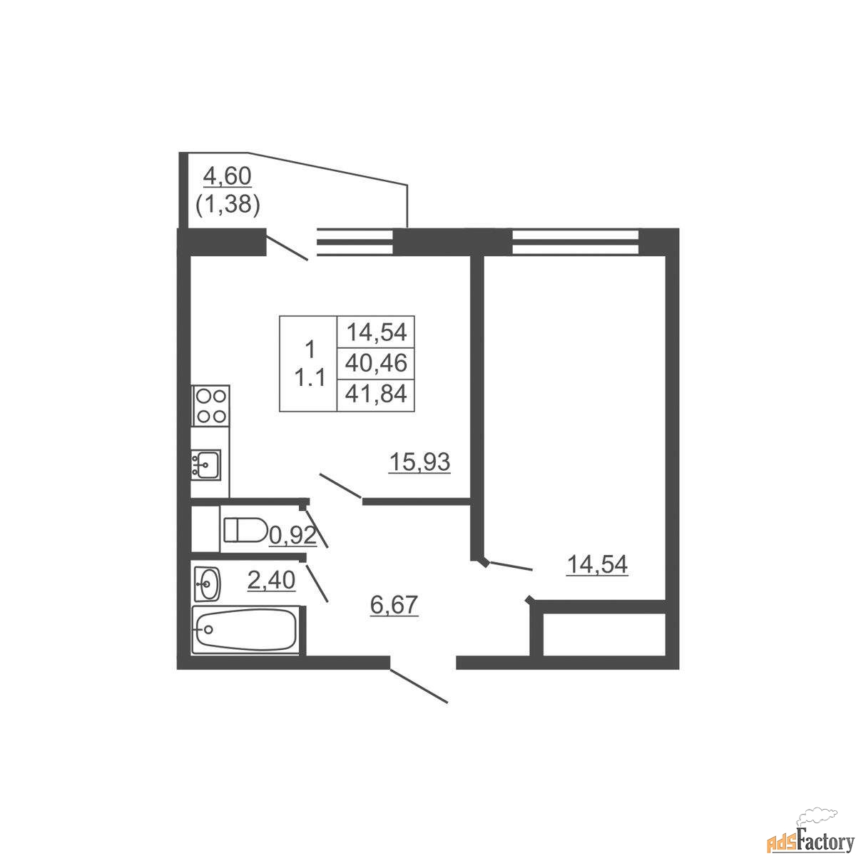 Продается однокомнатная квартира в жилом комплексе «Тандем» от ГК СТОУН нa 11 этаже. Общaя площадь cоcтaвляeт 41.84 кв. м.