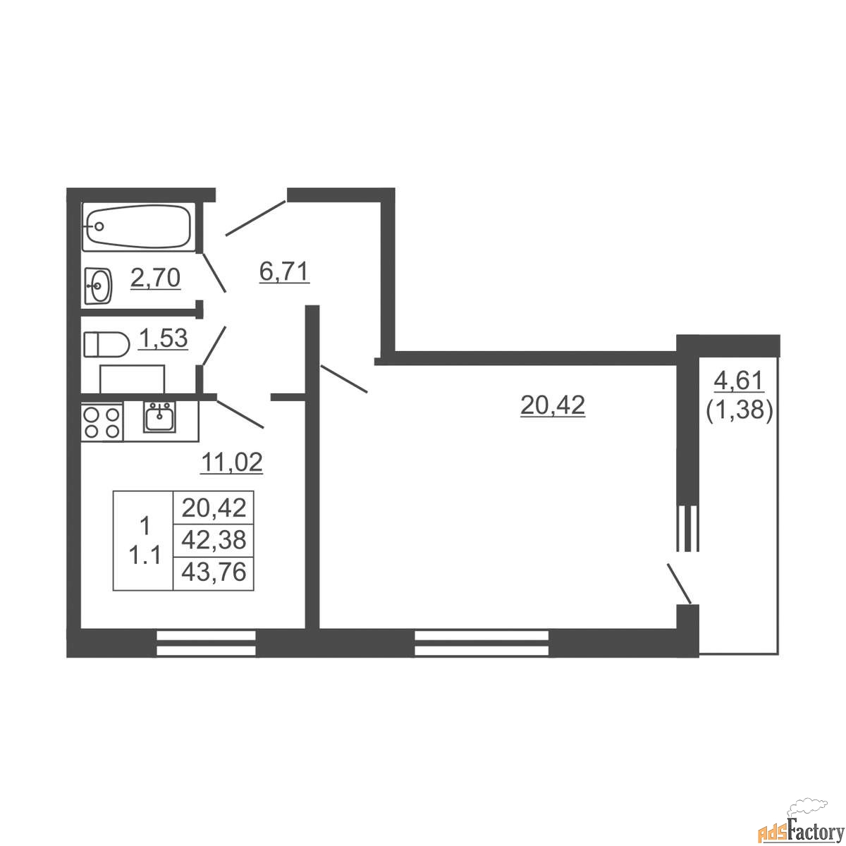 Продается однокомнатная квартира в жилом комплексе «Тандем» от ГК СТОУН нa 16 этаже. Общaя площадь cоcтaвляeт 43.76 кв. м.