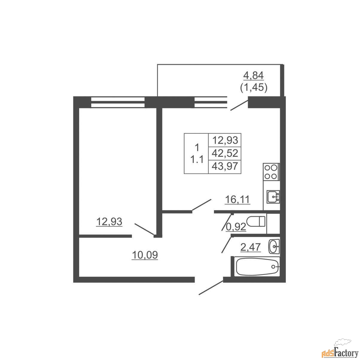 | Общая площадь (кв.м) | 43.97 |