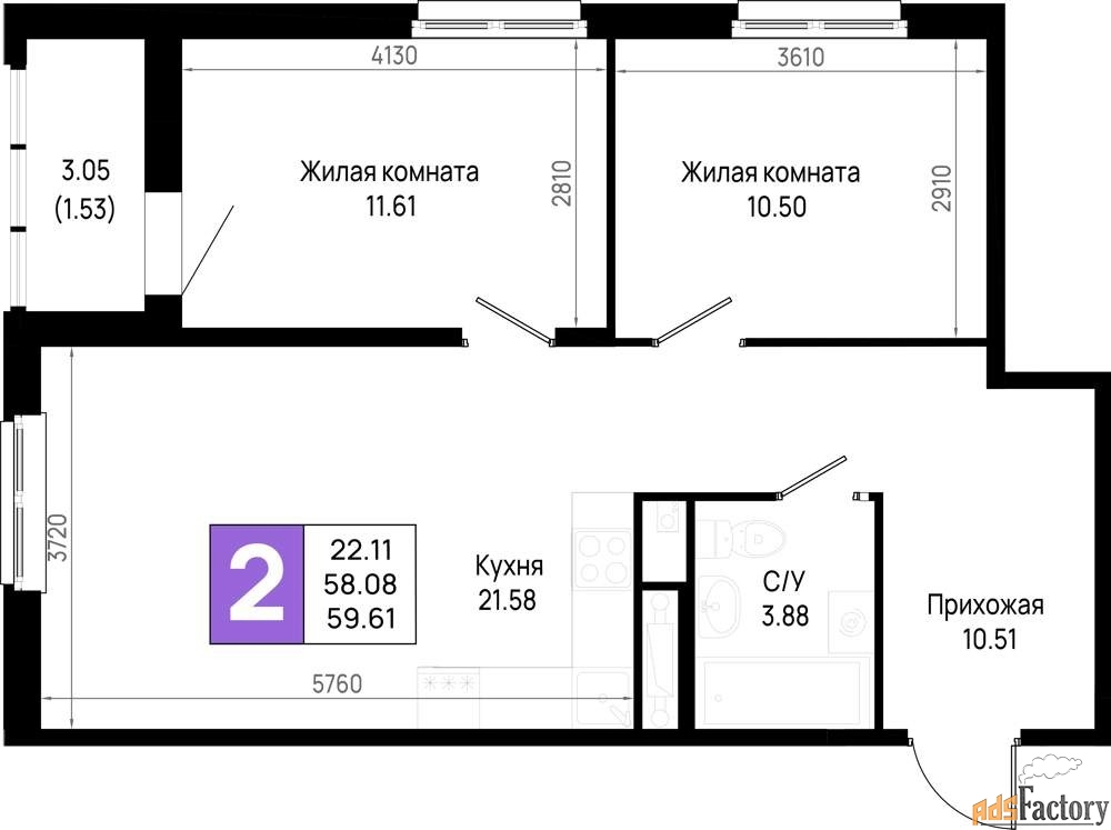 | Общая площадь (кв.м) | 59.61 |