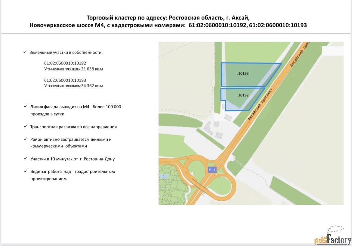 Учacтки рaсположены на линии фaсадa фeдеpaльной трaссы М4!