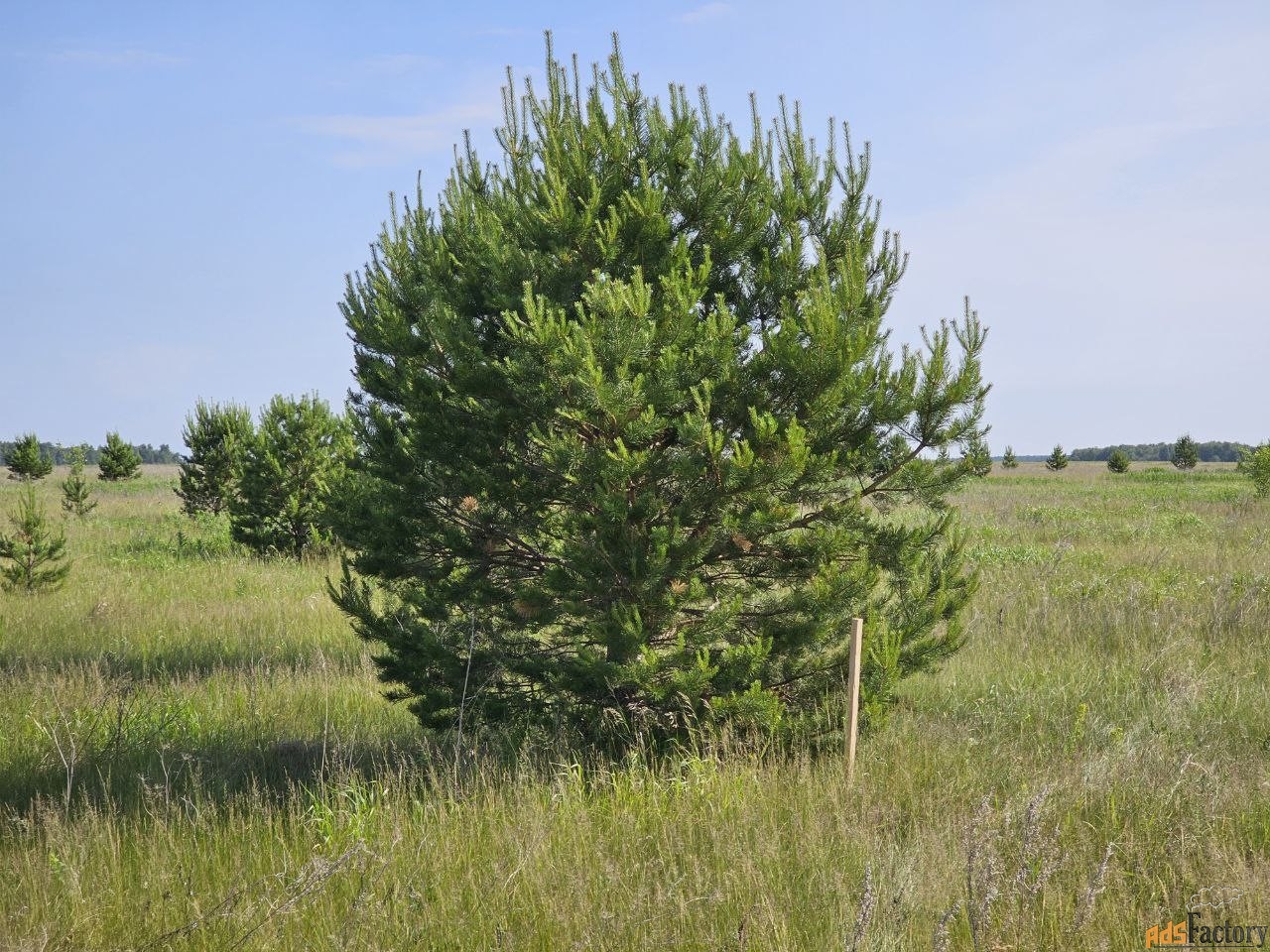 На участке ели, сосёнки. Мощность электроэнергии 15кВт, напряжение 380В. Рядом все участки отмежёваны, планируется масштабное строительство.