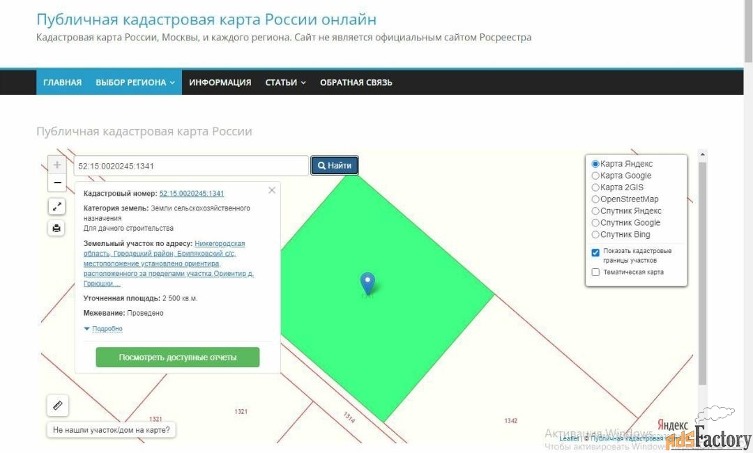 Продаю земельный участок, документы на руках. Для строительства дома, в красивом, живописном месте, в 200 м от р. Узола, в близи двух озёр, до них 130 м. Автодорога и коммуникации рядом. Лес и святой источник Никола Ключ, в шаговой доступности. Отличное место для жизни и отдыха. Участок отмежёван, то есть, установлены границы согласно законодательству. Площадь участка — 25 соток. Кадастровый номер: 52:15:0020245:1341. Кадастровая стоимость: 412225 рублей. Разрешенное использование: для дачного строительства. Категория земель: земли сельскохозяйственного назначения. Вид права — собственность. Один собственник — физическое лицо. Адрес: Нижегородская область, Городецкий район, Бриляковский с/с, д. Горюшки. Цена — 250 000
