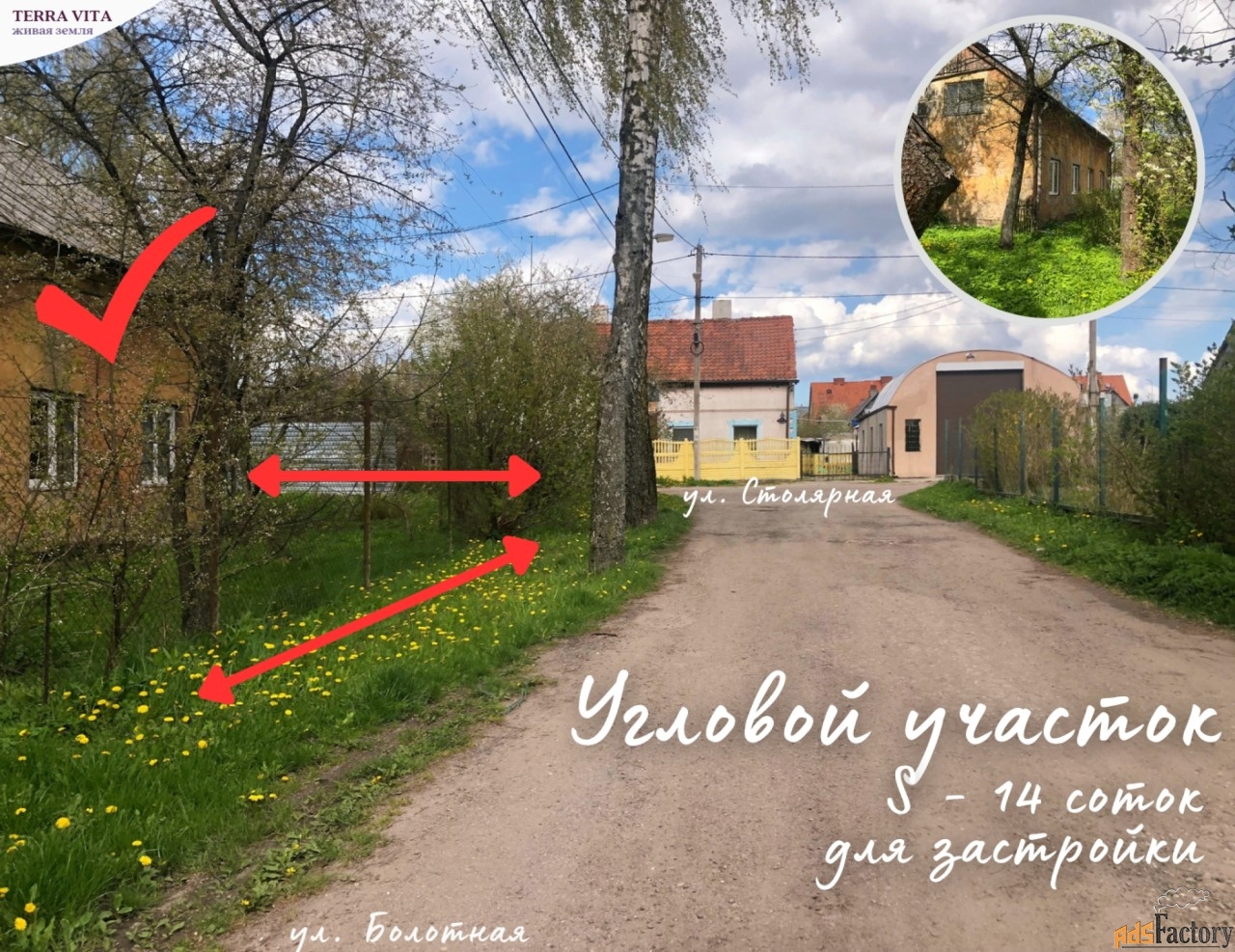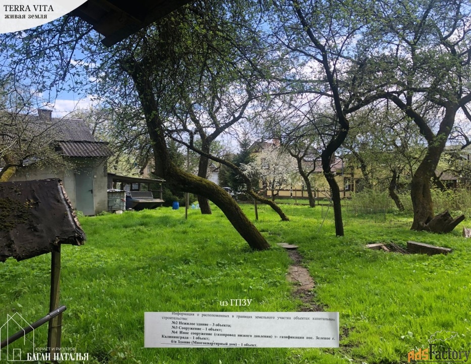 • На участке расположен немецкий многоквартирный дом № 2-4 (один собственник) 1936 года постройки на 3 квартиры общей площадью 131.4 м2 (под снос или реконструкцию, перепланировку)