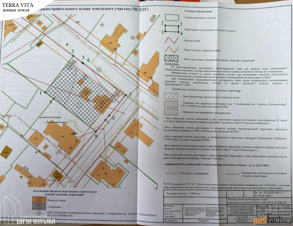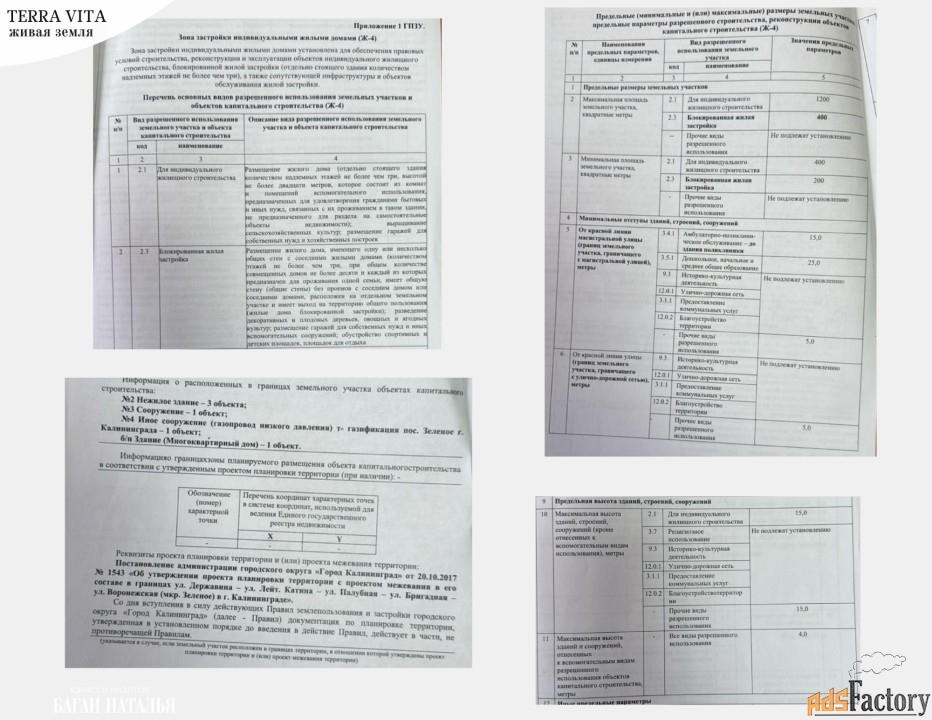 • По проекту межевания № 489 от 20.10.2017 ул. Державина – ул. Лейт. Катина – ул. Палубная – ул. Бригадная – ул. Воронежская (пос. Зелёное) образован земельный участок площадью 1390 м2 под малоэтажную многоквартирную жилую застройку. Кадастровый номер участка 39:15:121108:124, дома 39:15:121108:89