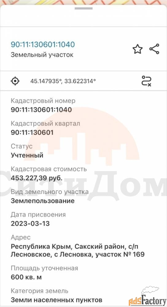 Продам участок в Лесновке, новая нарезка! Массив активно застраивается! Поселок хорошо развит, есть все необходимое для комфортной жизни. г. Саки в 1 км от участка. Остановка общественного транспорта 200м. Дополнительно оплачивается комиссия покупателем 2.5%, но не менее 70 000 рублей. Звоните! При звонке сообщите, пожалуйста, номер объекта 2763, чтобы мы могли предоставить вам интересующую информацию оперативно.