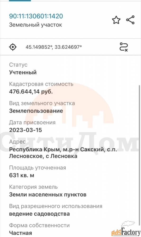 | Категория земель | садоводство |