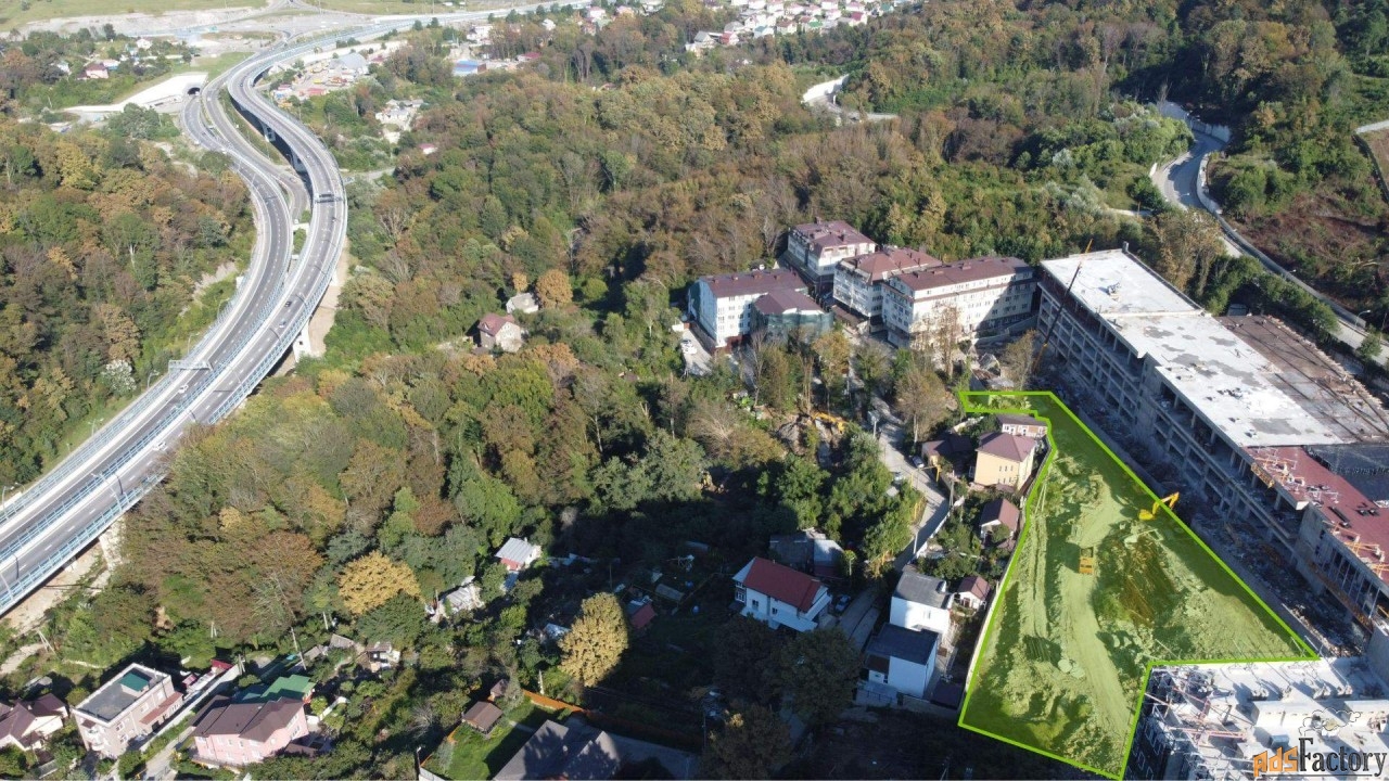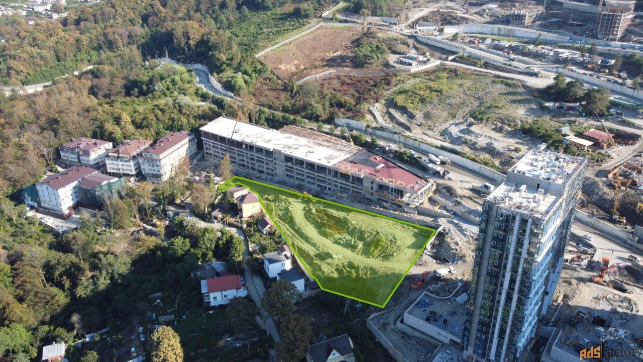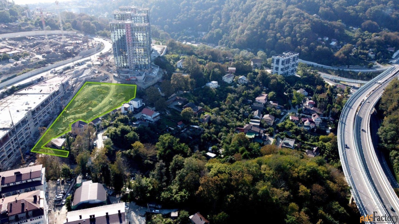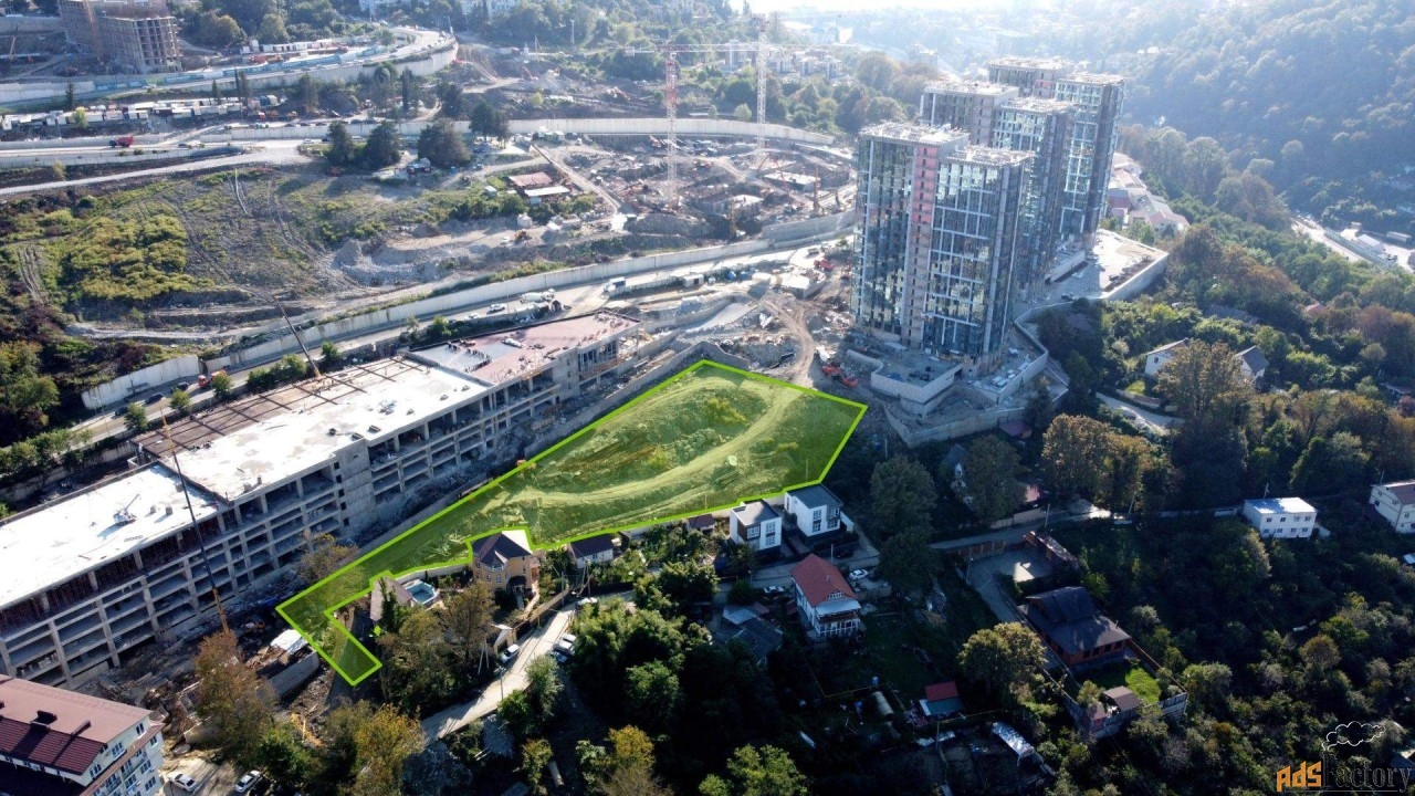 Земельный участок расположен в районе с развитой инфраструктурой - между торговым центром «Сочи Парк» и новым жилым комплексом, что делает его наиболее подходящим для строительства общественно-делового центра.