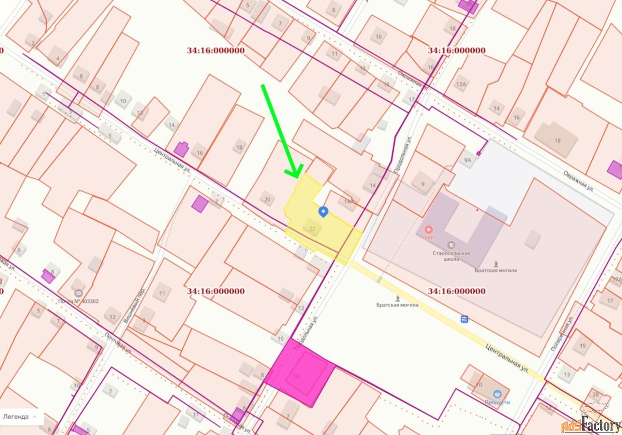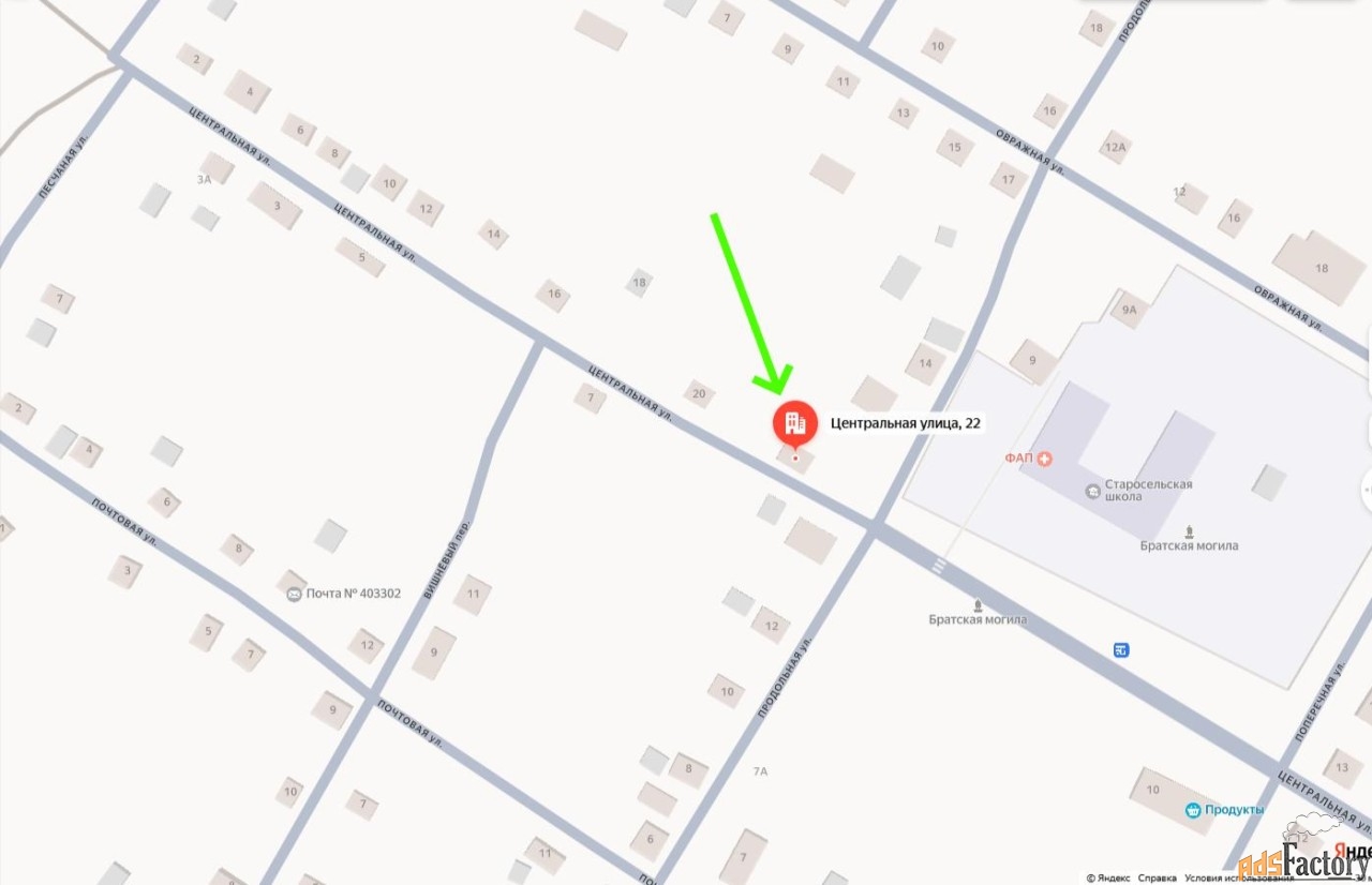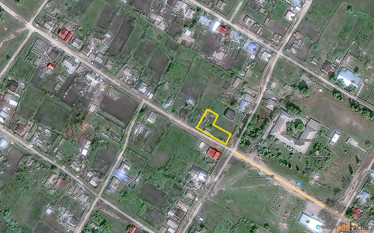 Продаётся участок, площадь 22 сотки. На участок проведены газ, электричество, пробурен водопровод, во дворе есть погреб. На территории участка два больших огорода. Участок расположен в центре села Староселье, в 2 минутах ходьбы остановка, школа, магазины. Развита транспортная доступность, с улицы Центральная. До центрального пляжа пешком 650 метров. В пешей доступности автобусная остановка (160 метров), автобус ходит до города Михайловка каждые 3 часа, с 7:00 до 18:00. На машине до города 10 минут. Собственник один.
