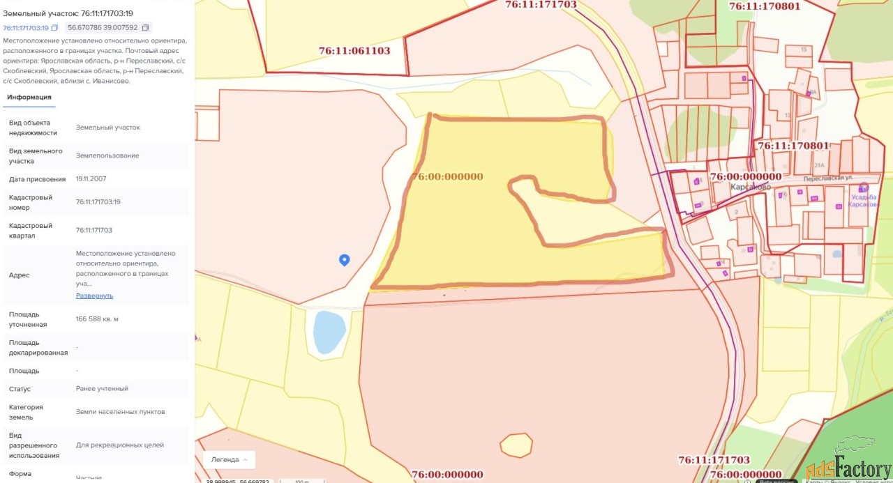 ВРИ: Отдых (рекреация), расположенный по адресу: Ярославская область, Переславский район, вблизи с. Иванисово