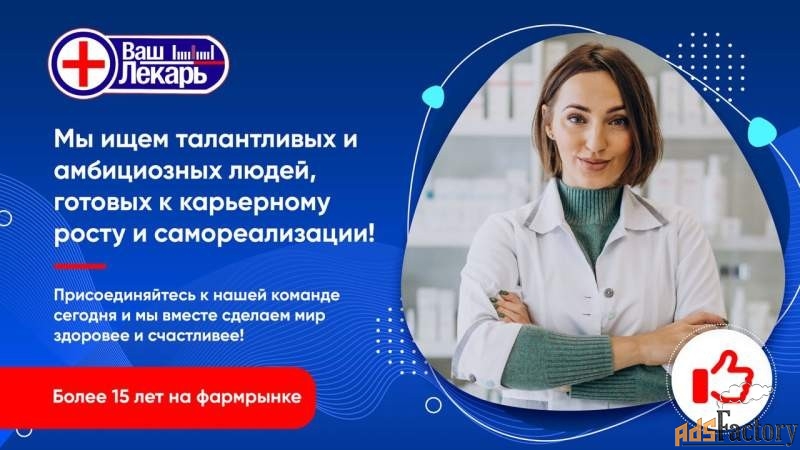 Компания ООО "ВАШ ЛЕКАРЬ" входит в ГК Zemco, на фармрынке зарекомендовала себя как динамично развивающиеся и прогрессивная компания. Наша ценность - люди и здоровье всех людей! Мы пропагандируем ЗОЖ в нашей сети аптек бесплатно для населения.