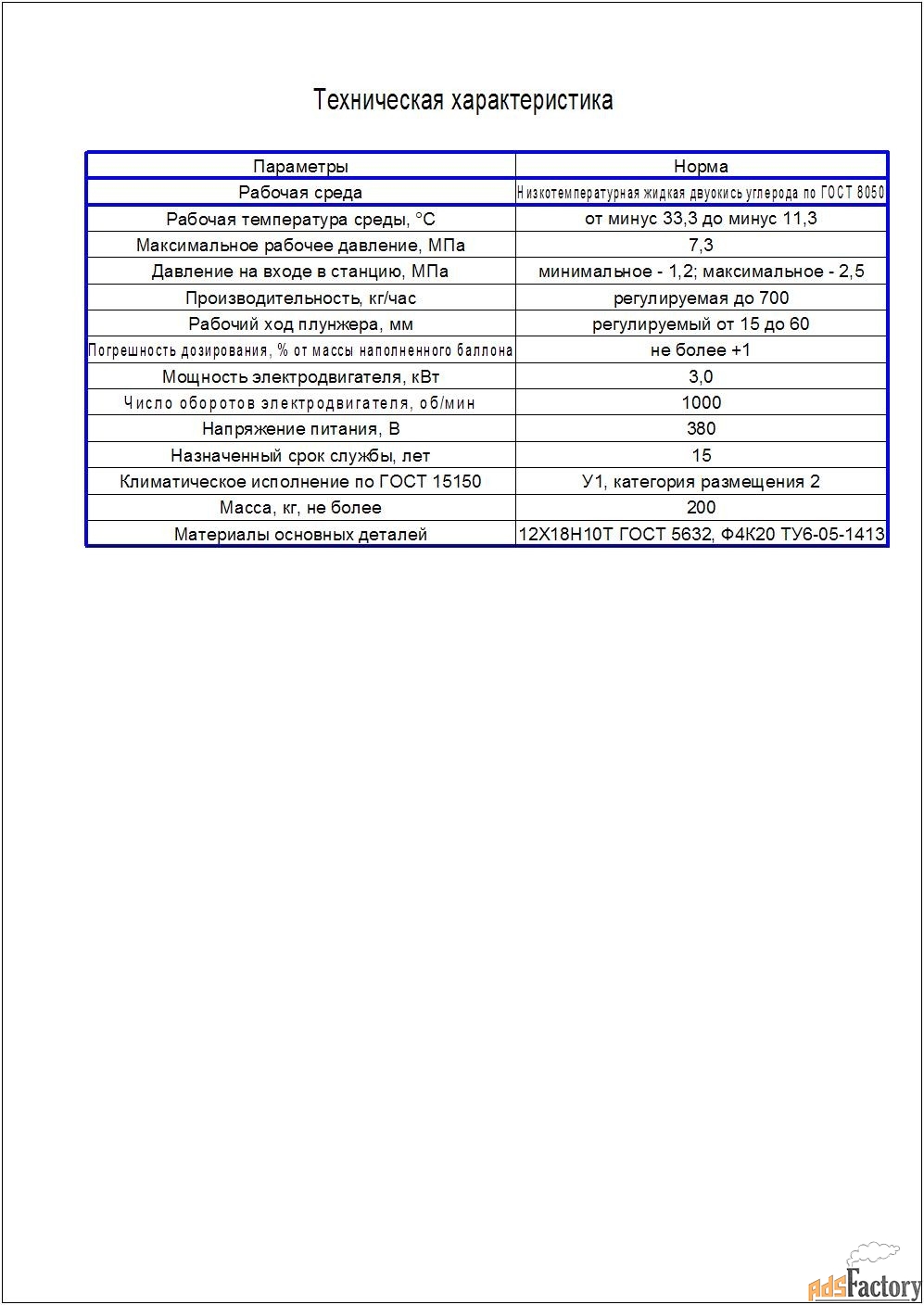 Разрешенная для зарядки в баллон масса углекислоты устанавливается с пульта управления системы управления станцией(СУЗС). Дозирование количества углекислоты осуществляется автоматически - отключением электропитания привода насоса по команде от системы управления СУЗС при достижении установленного значения массы.