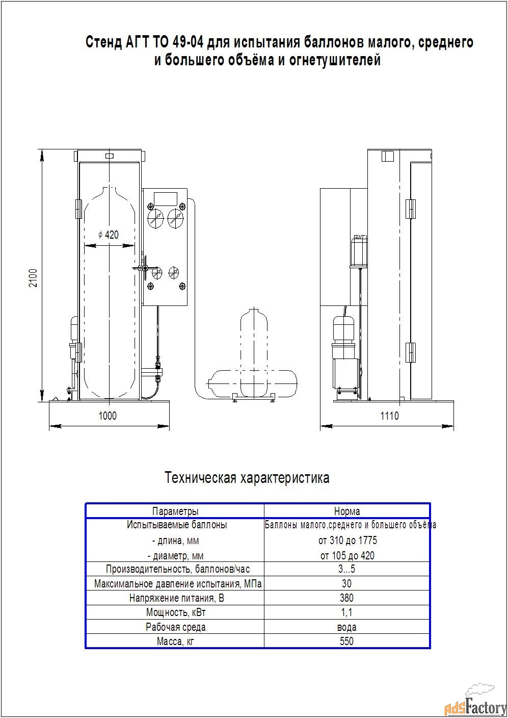 1. АГТ ТО 49 - 04 - стенд для гидравлического испытания баллонов, а так же для проверки их массы;