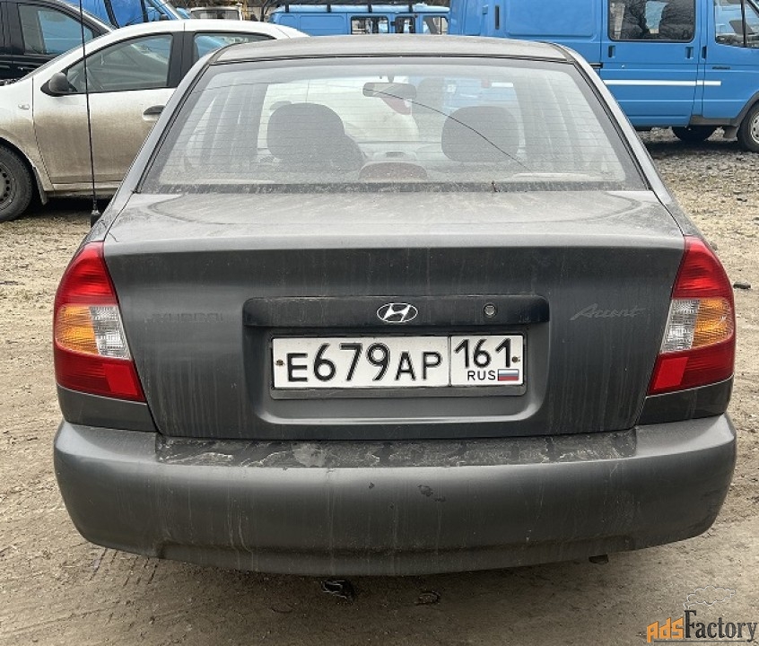 Юридическое лицо реализует - Автомобиль Hyundai Accent. Местонахождение ТС: г. Ростов-на-Дону, ул. Днепропетровская, 54/1, ПС 220 кВ Р-4. Характеристики ТС: VIN: X7MCF41GP8A155164 Марка, модель ТС: Hyundai Accent Наименование (тип ТС): легковой, Пробег, км: 551076 (на 13.11.2024), Год выпуска ТС: 2008, Мощность двигателя, л.с. (кВт): 102 (75), объем двигателя 1495, тип двигателя бензиновый, Цвет кузова (кабины, прицепа): серый. Паспорт транспортного средства: 61 МР 210910 от 17.01.2008 Техническое состояние согласно Акту осмотра от 13.11.2024: неудовлетворительное, не на ходу. Сведения о наличии спора; обременений/ограничений; особые отметки: Спора по имуществу, обременений/ограничений нет; особые отметки отсутствуют. Продажа осуществляется на ЭТП РАД, дата аукционеа 12.02.2026г.