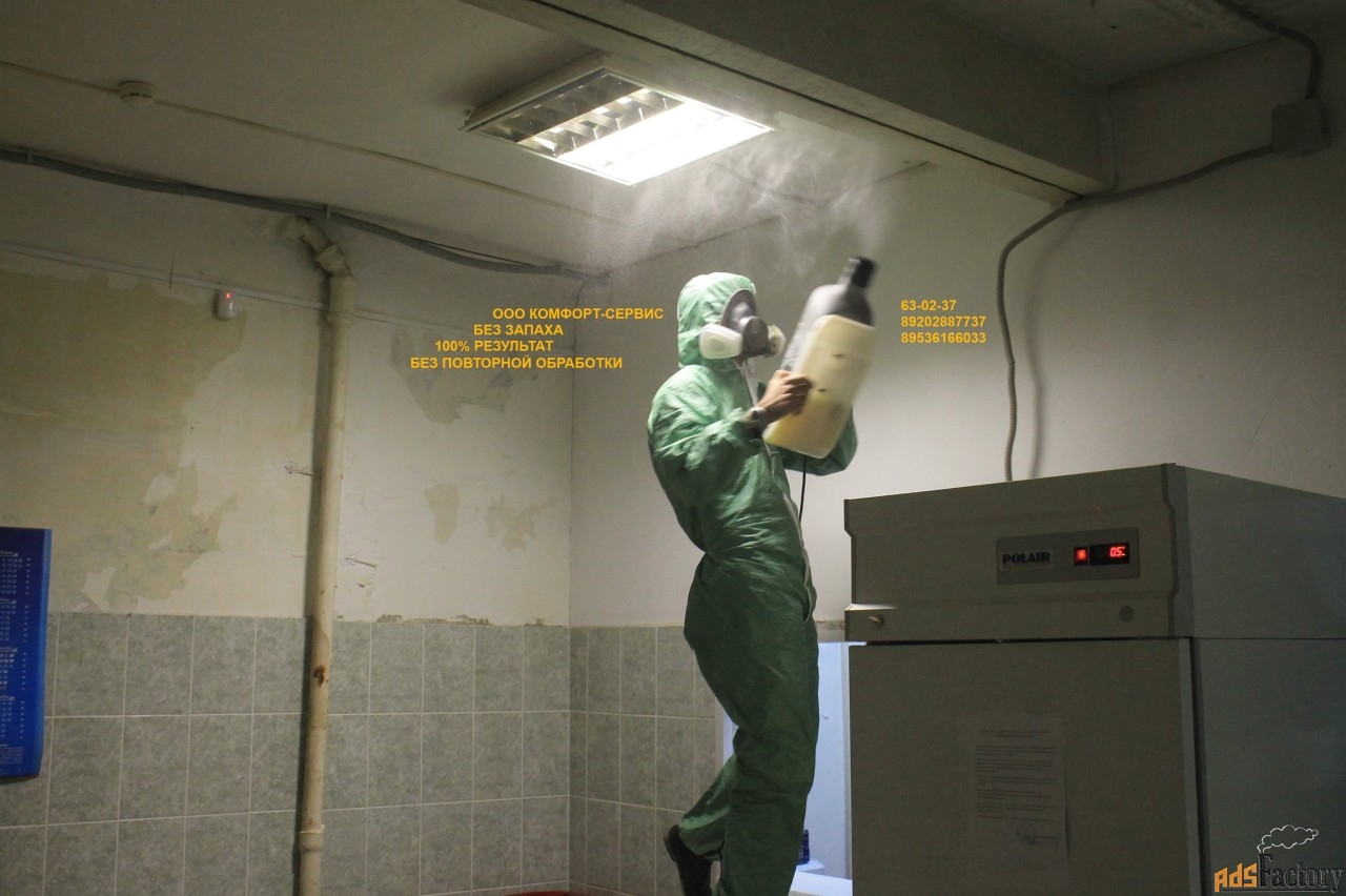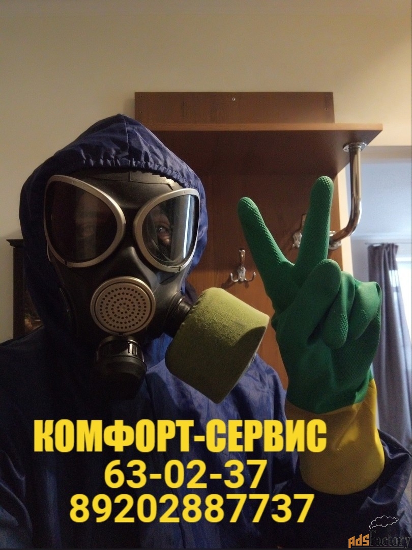 ООО ДЕЗ-Служба «Комфорт-Сервис» в Орле проводит профессиональные работы по уничтожению клопов, тараканов, муравьев, блох, вшей, клещей, короеда, вирусов, бактерий, плесени, неприятных запахов холодным туманом! Качественные услуги по Европейским технологиям и стандартам без ущерба Вашей квартире и мебели!