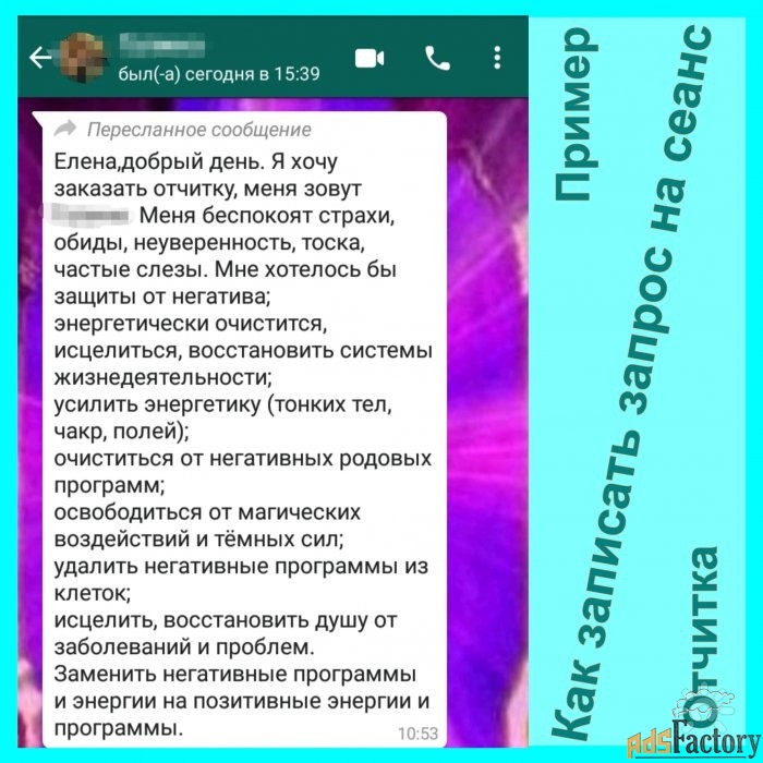 Целительный сеанс. (Отчитка) — это скорая помощь и защита для вас при любом негативе и проблемах со здоровьем. Мы делаем его для вас один раз, а затем вы его используете (аудиозапись сеанса) в качестве профилактики и лечения.