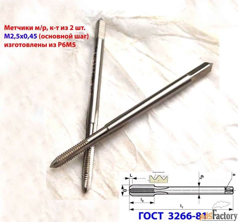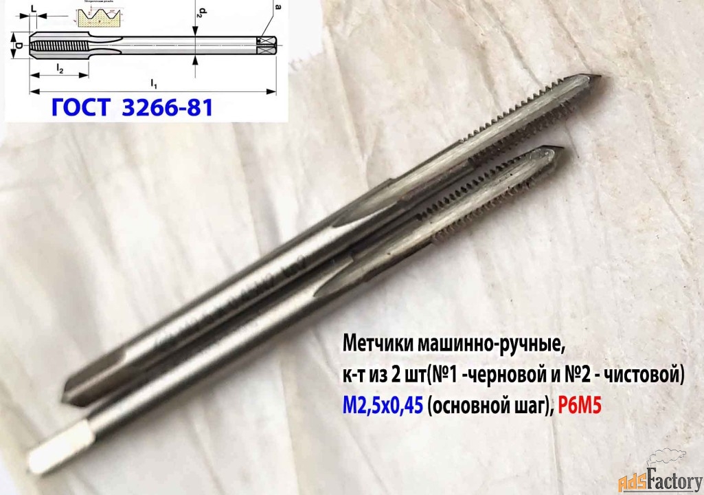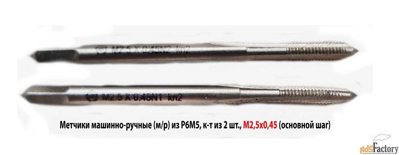 Метчики машинно-ручные (м/р), шлифованный профиль резьбы, комплект из 2 шт. (№1- черновой, №2 - чистовой), изготовленный из быстрорежущей инструментальной стали Р6М5, для нарезания метрической (М) правой резьбы , особенно в особо прочных, нержавеющих, огнеупорных и легированных конструкционных сталях и материалах, с помощью станков общего назначения или ручным способом с помощь воротка (метчикодержателя).