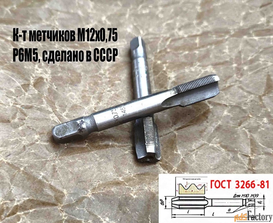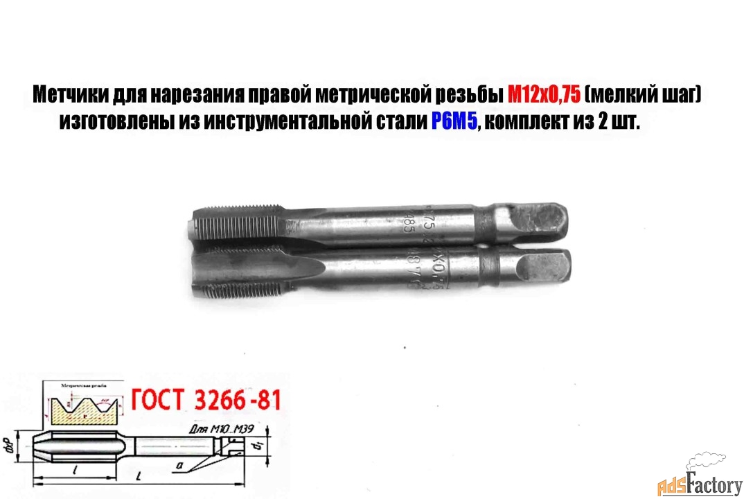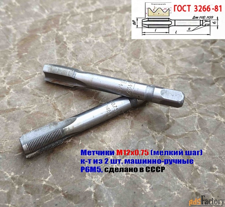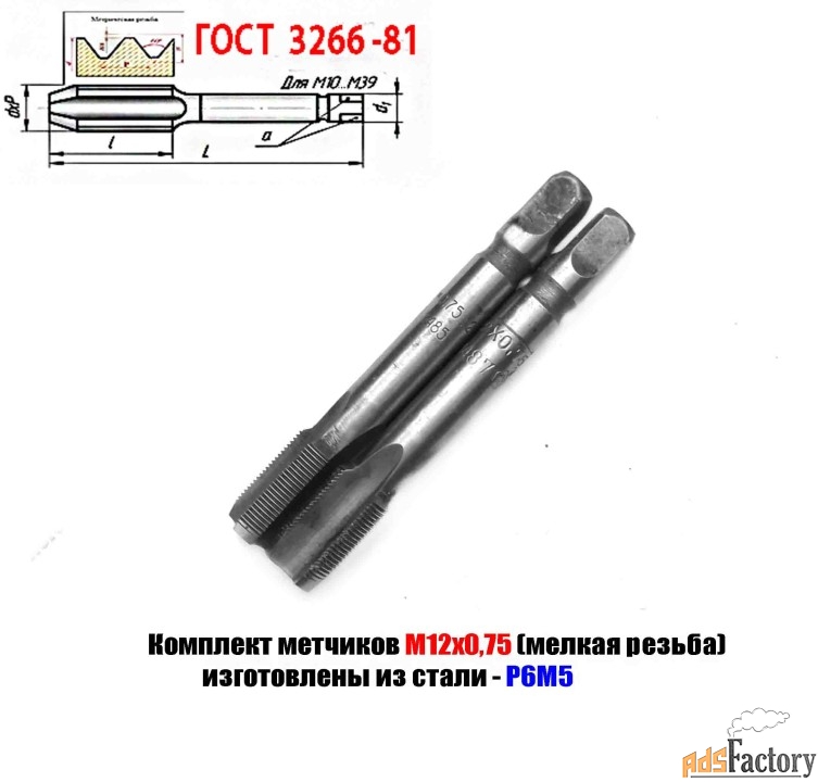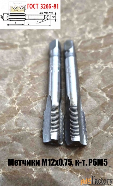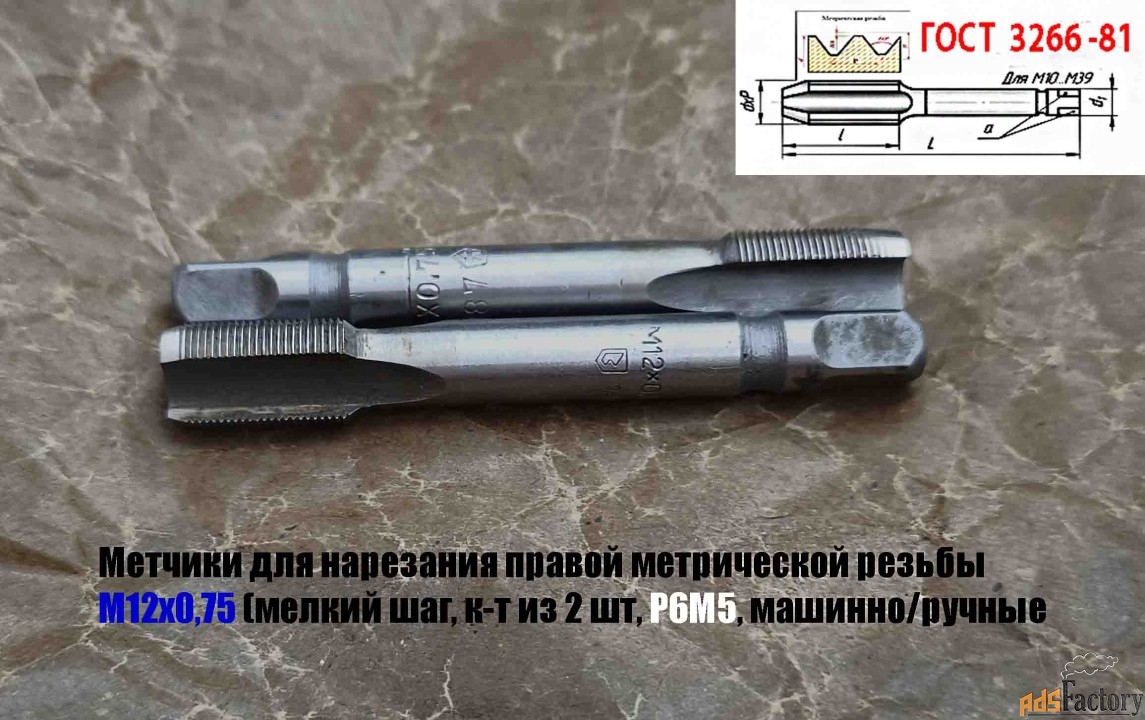 Метчики машинно-ручные (м/р), шлифованный профиль резьбы, комплект из 2 шт. (№1- черновой, №2 - чистовой), изготовленный из быстрорежущей инструментальной стали Р6М5, предназначены для нарезания метрической (М) правой резьбы в глухих и сквозных отверстиях в различных материалах, особенно в особо прочных, нержавеющих, огнеупорных и легированных конструкционных сталях и сплавах, с помощью станков общего назначения или ручным способом с помощь воротка (метчикодержателя).